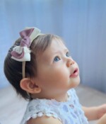 En su versión de balaca, el moñito mide aproximadamente 4 cm de alto y 7 cm de ancho y está terminado en una banda elástica super suave hecha de 100% nylon. Esta balaca se ajusta perfectamente a cualquier medida, desde recién nacida hasta adulto, asegurando un ajuste cómodo y seguro en todo momento.